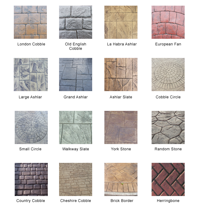 FlintStone driveways offer a Full range of the most popular concrete stamps and patterns which can be used in conjunction with any of our range of colours.